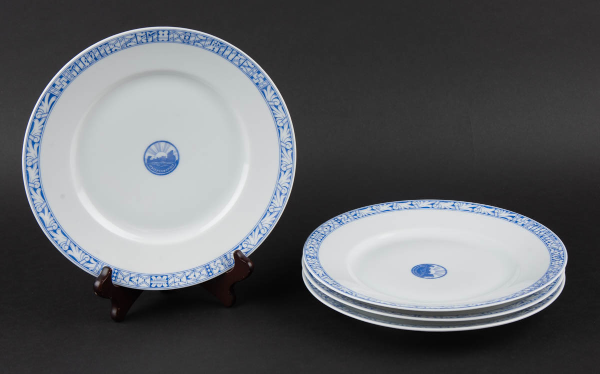 Alþingishátíðin 1930 - Fjórir matardiskar - Kaestner Saxonia - Postulín - Merkt. 25 x 4 cm