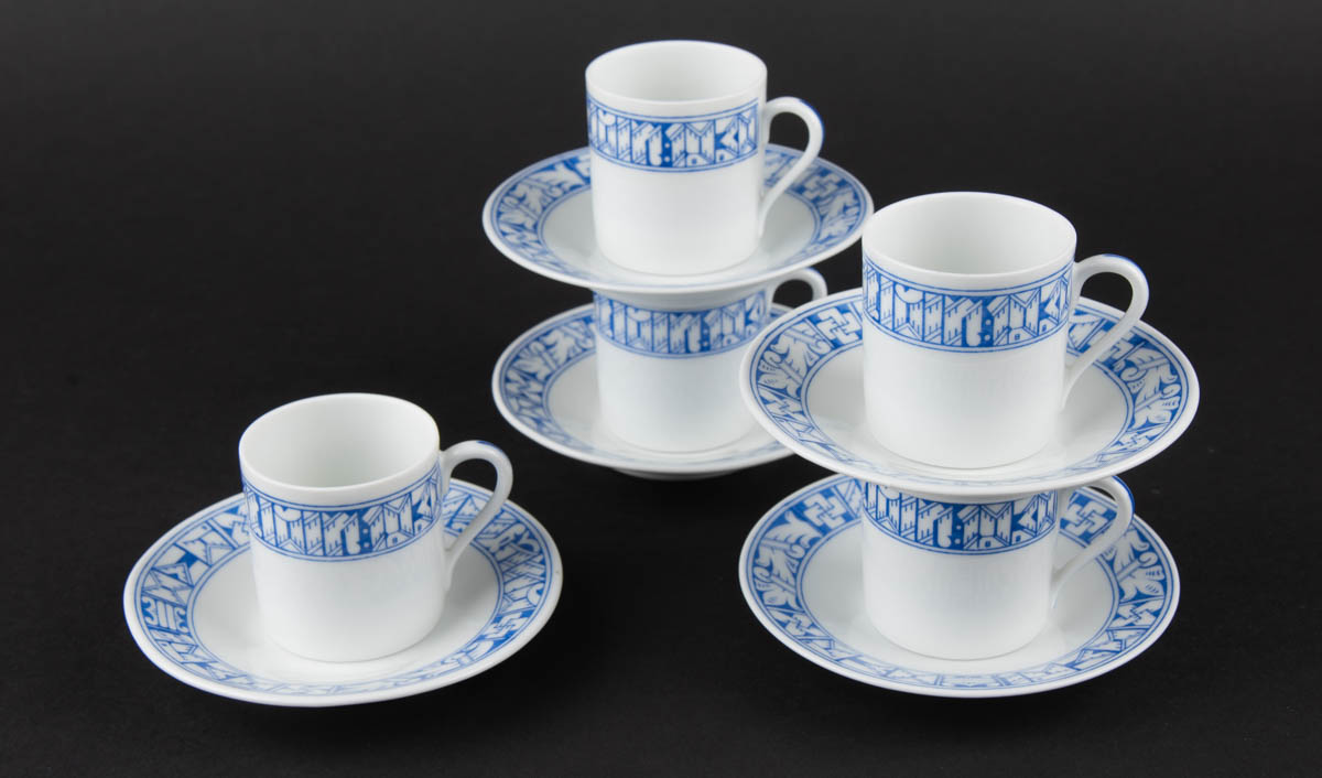 Alþingishátíðin 1930 - Fimm mokkabollar með undirskál - Kaestner Saxonia - Postulín - 1 bolli viðgerður. Merkt. 6 x 11 cm