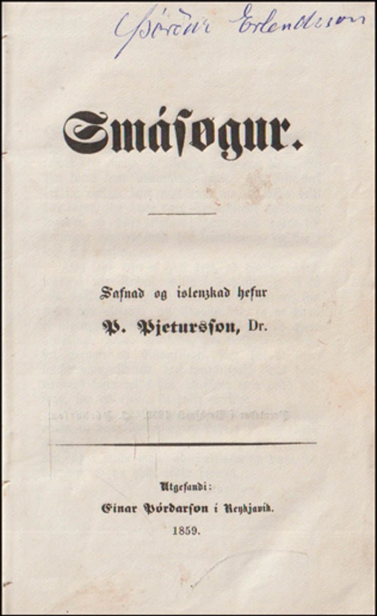 Smásøgur. Safnað og íslenzkað hefur P. Pjetursson. Dr. - Smásögur. - Reykjavík. Einar Þórðarson, 1859. cm