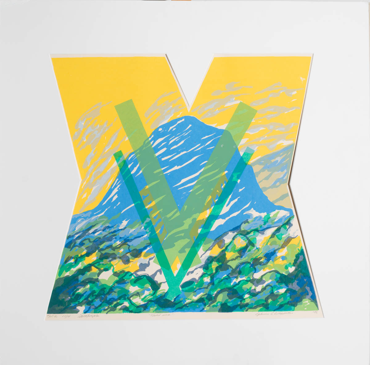 Fjallið eina - Þrykk - 1986. Merkt. 57 x 55 cm