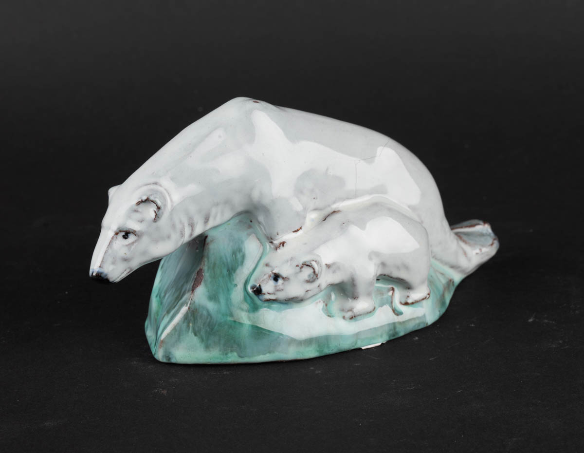 Ísbjörn með hún - Keramik - Merkt. 10 x 20 cm