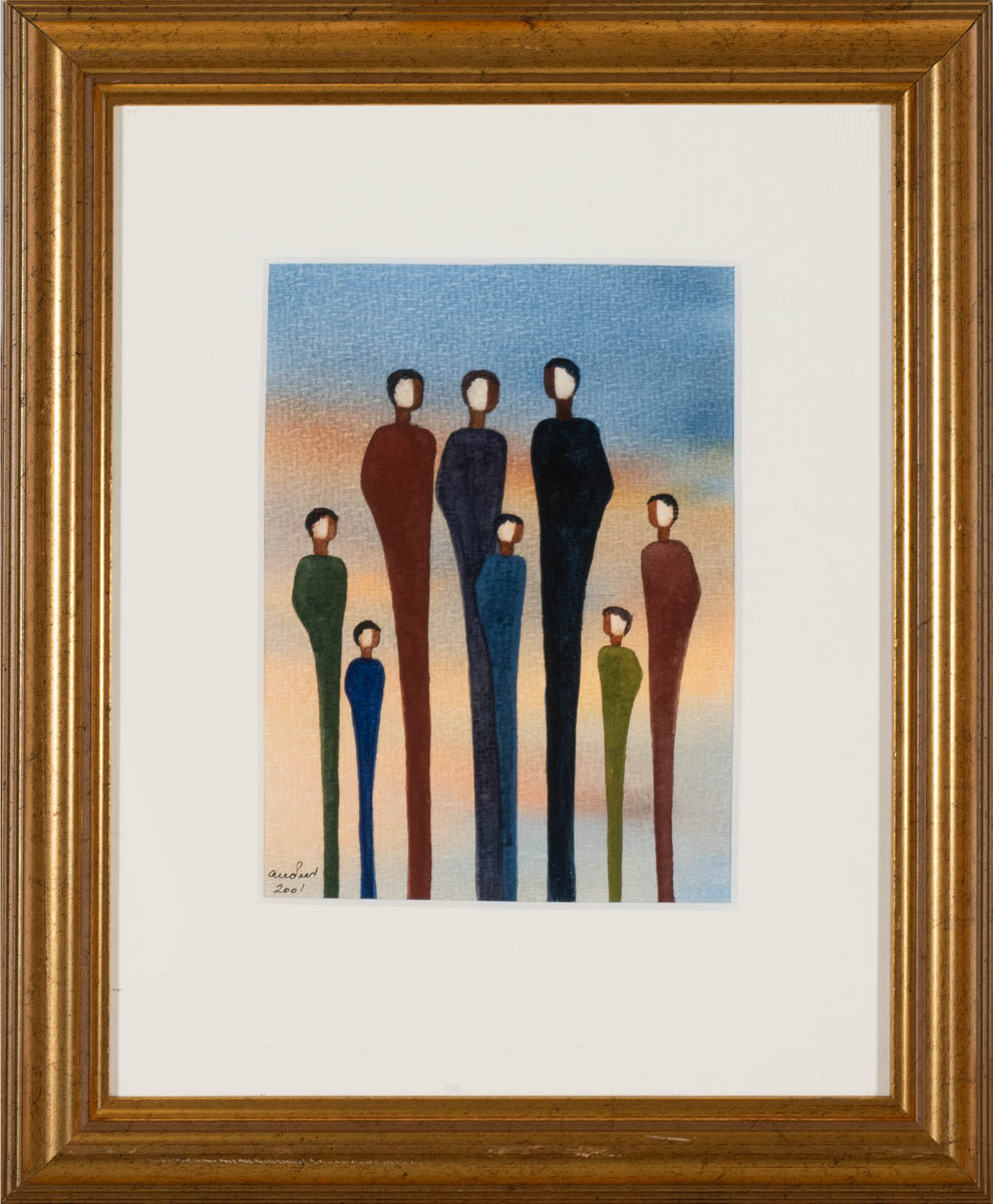 Karlar í krapinu - Vatnslitir - 2001. Merkt. 19 x 14 cm