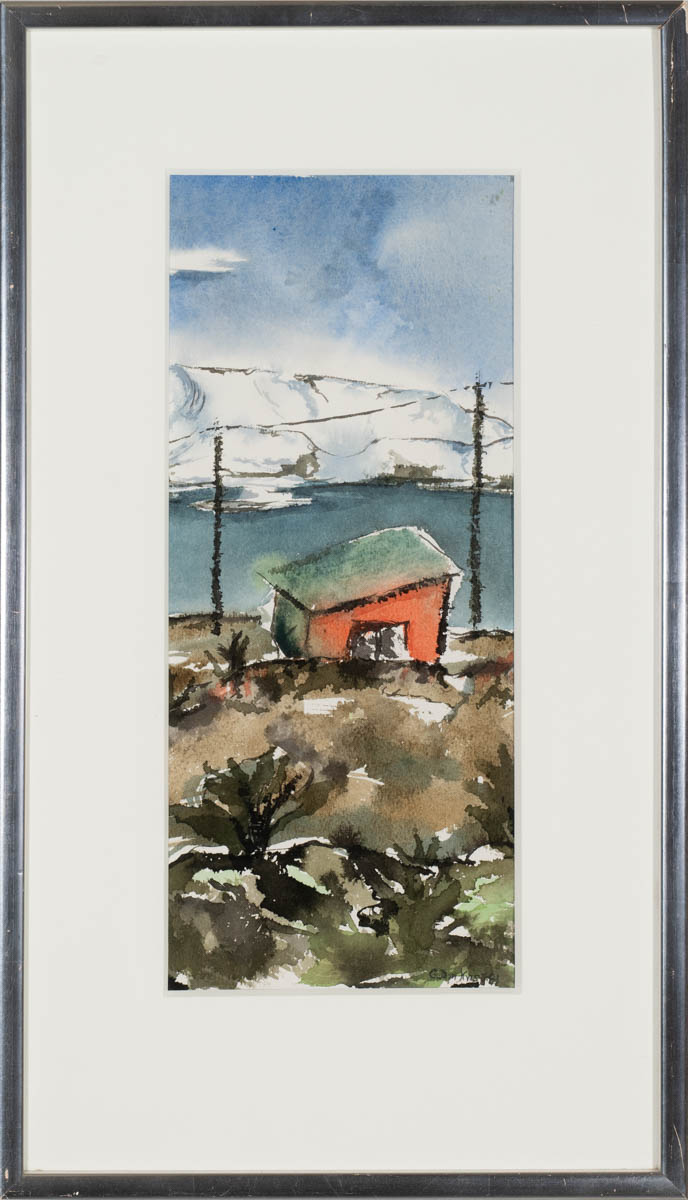 Horft yfir á Snæfjallaströnd - Vatnslitir - 1987. Merkt. 39 x 17 cm