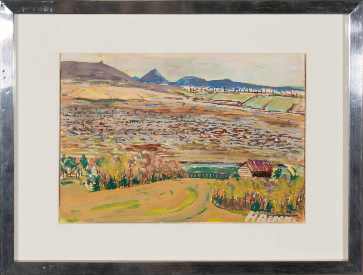 Útsýni til borgarinnar - Vatnslitir - Merkt. 20 x 29 cm