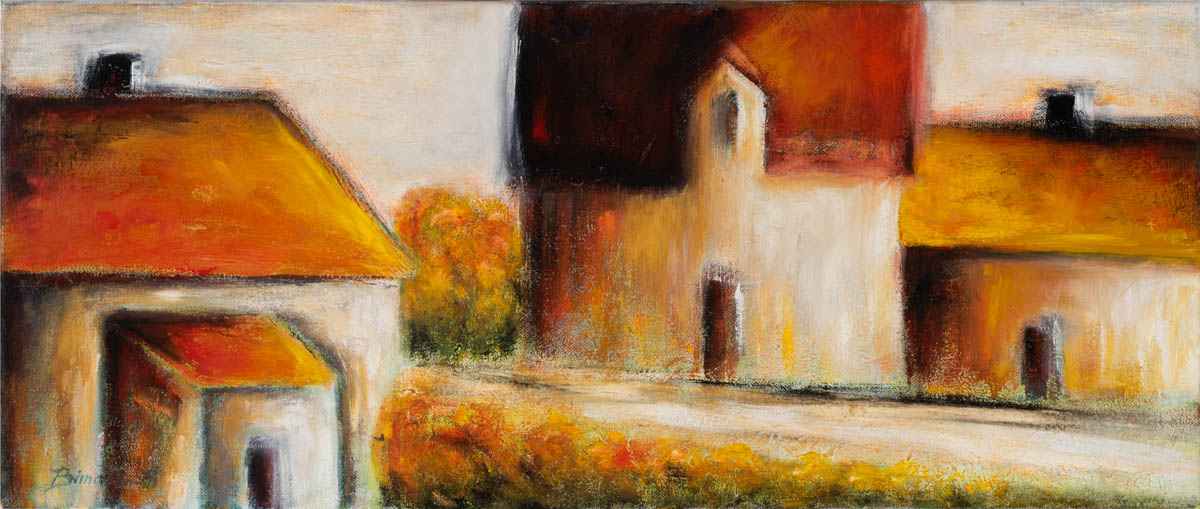 Í götunni - Olía - Merkt. 25 x 60 cm