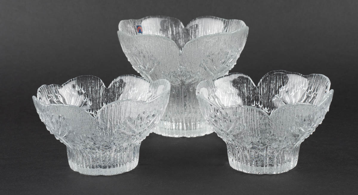 Þrjár skálar - Kristall - Minni skálar: 8 x 13cm. Ómerkt. 11 x 14 cm