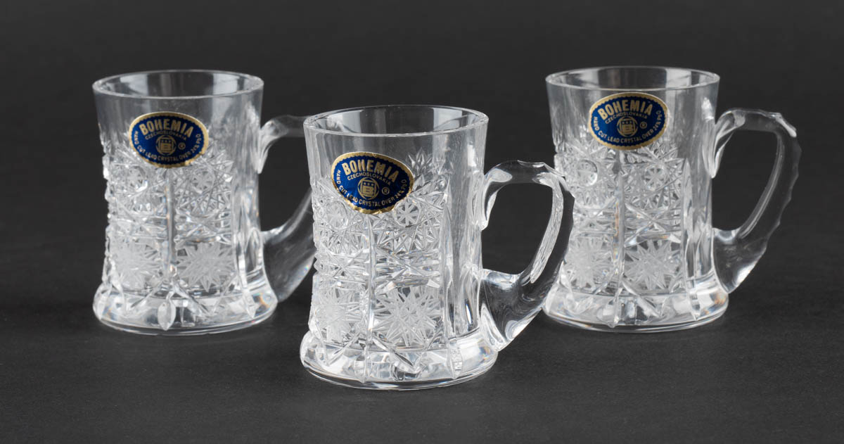 Halastjarnan - Þrjú teglös - Kristall - Merkt. 6 x 4 cm