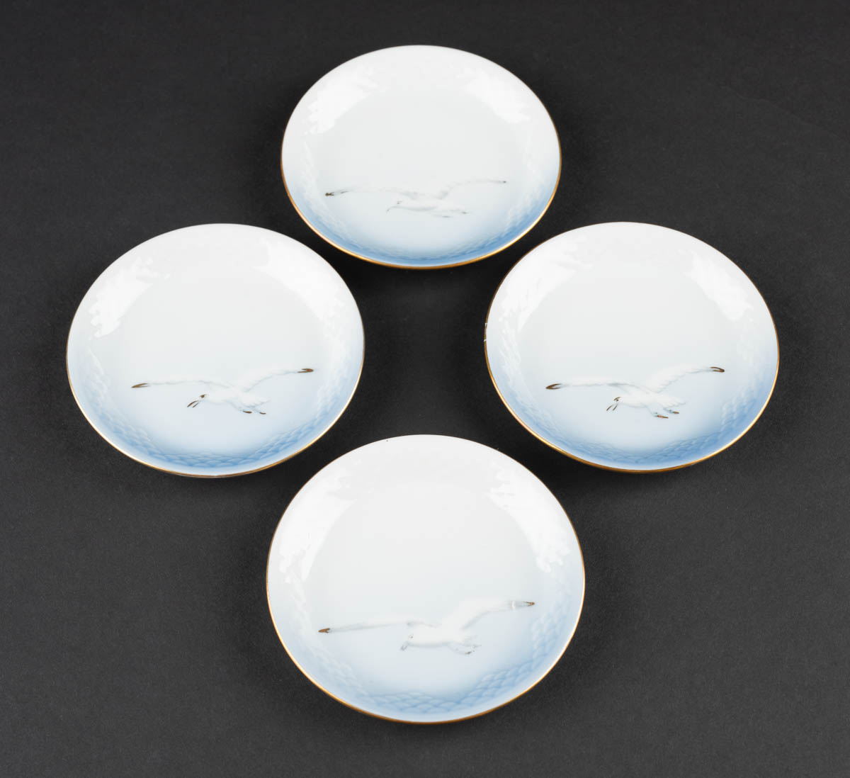Mávastell - fjórir litlir hliðardiskar - Postulín - #30. Merkt. 10 x 10 cm