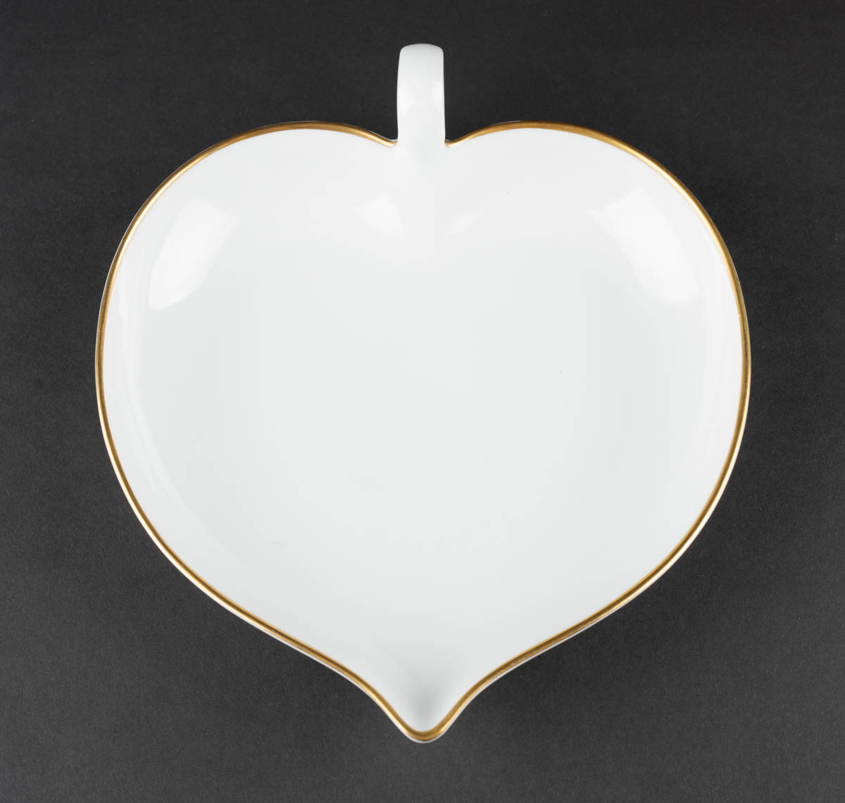 Lauflaga skál með gullrönd - Postulín - #199. Merkt. 24 cm