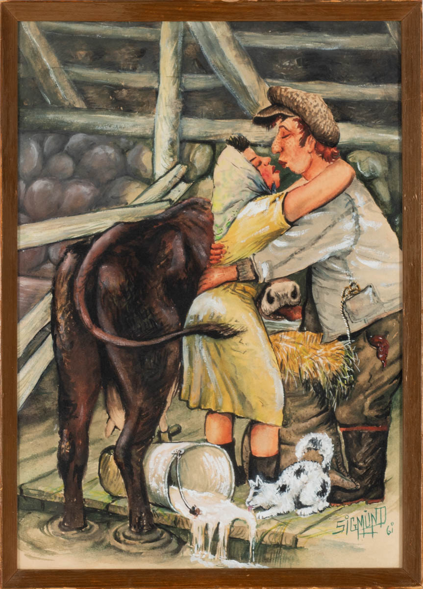 Forboðnar ástir - Vatnslitir - 1961. Merkt. 34 x 24 cm