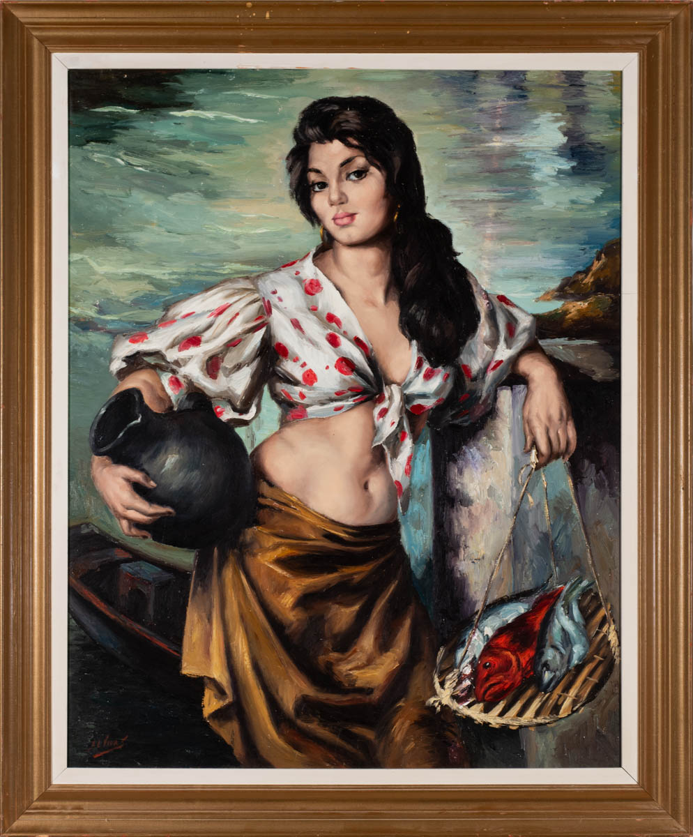 Spænsk kona - Olía - Merkt. 92 x 72 cm