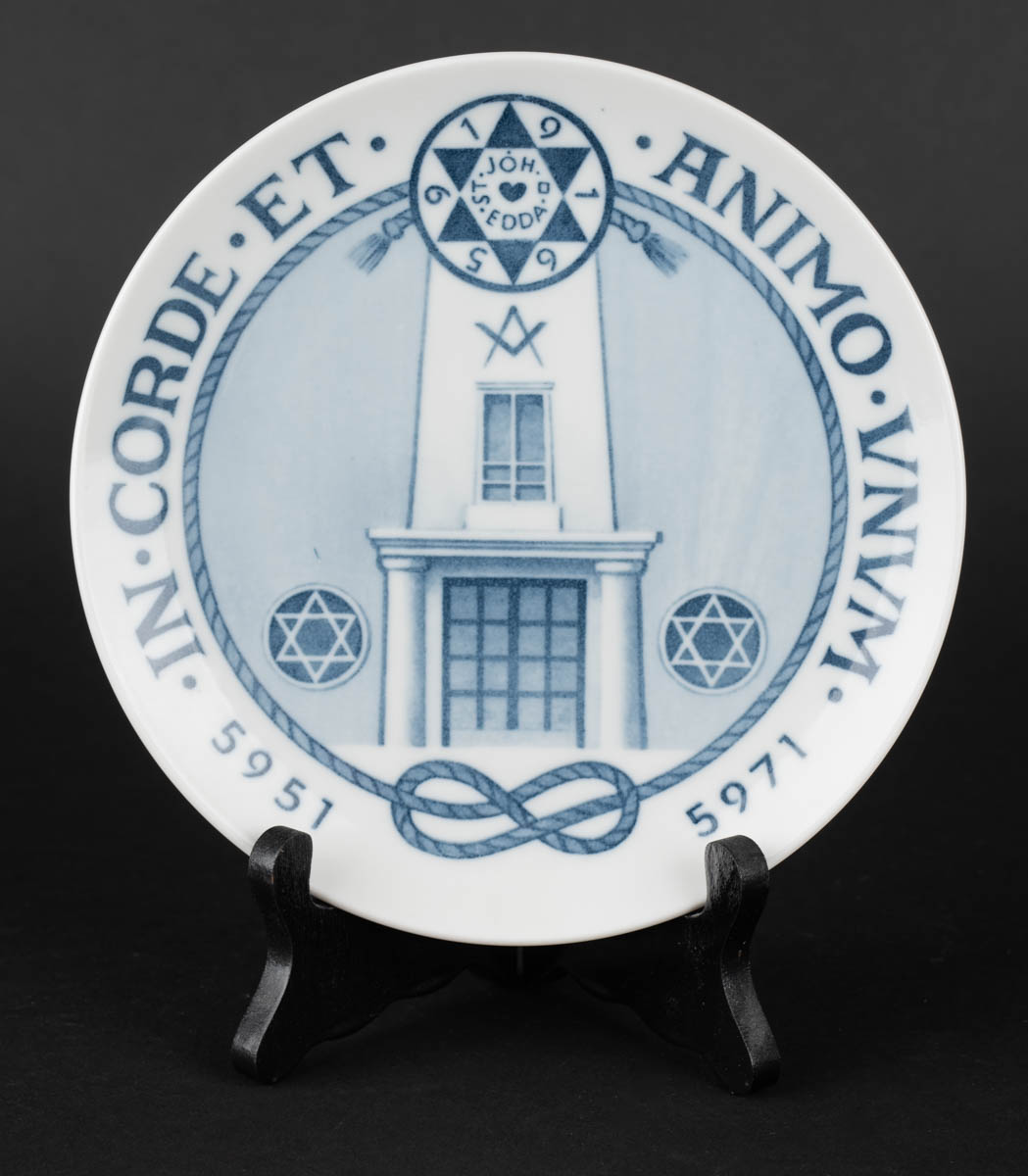 Frímúraraplatti 1971 - St. Jóhannesarstúkan Edda - Postulín - Merkt. 18 x 18 cm