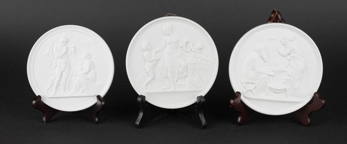 Þrír plattar eftir Berthel Thorvaldsen - Postulín - Merkt. 15 x 15 cm