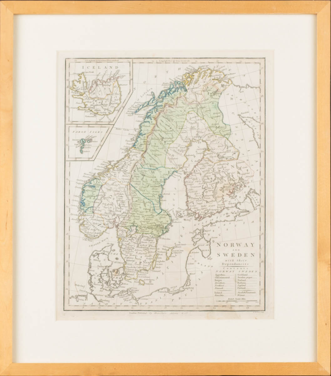 Ísland-Skandinavía, handlitað frumeintak frá 1828 - Kort - Robert Wilkinson. Ómerkt. 29 x 24 cm