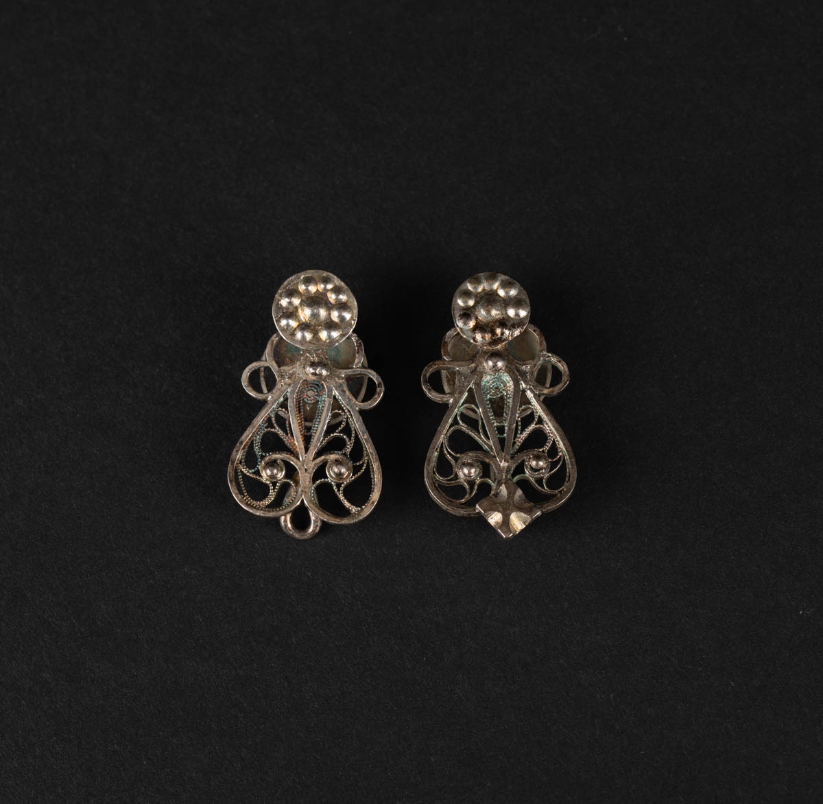 Svuntuhnappar úr víravirki - smáir - Silfur - Ómerkt. 5 x 1,5 cm