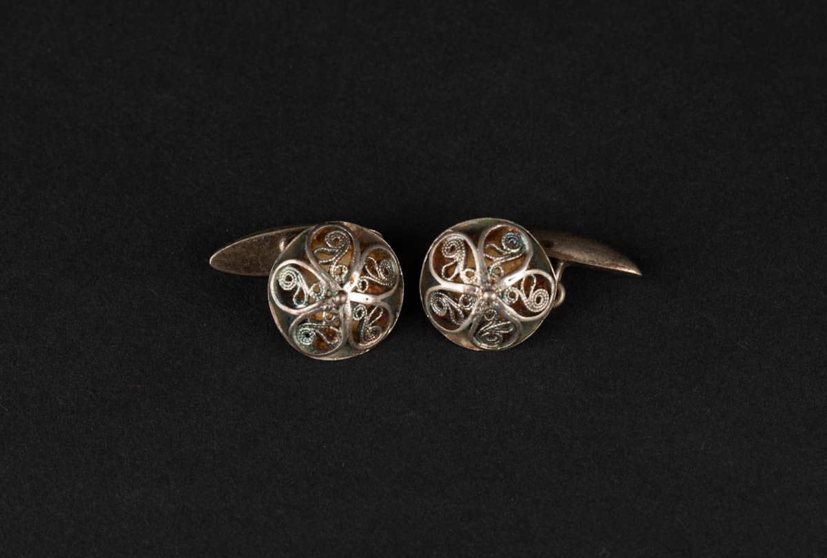 Skyrtuhnappar úr víravirki, smáir - Silfur - Ómerkt. 1,5 x 1,5 cm