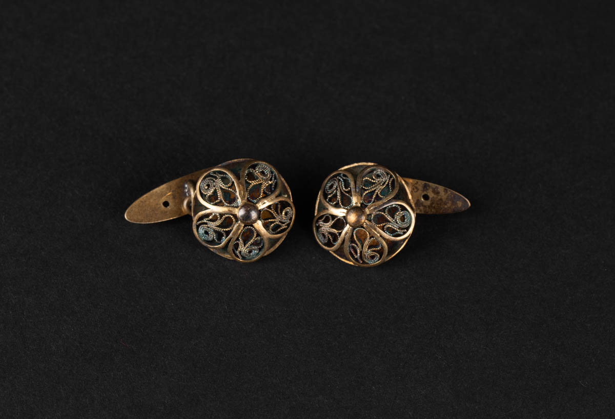 Skyrtuhnappar úr víravirki, gyllaðir - Málmur - Ómerkt. 1,5 x 1,5 cm