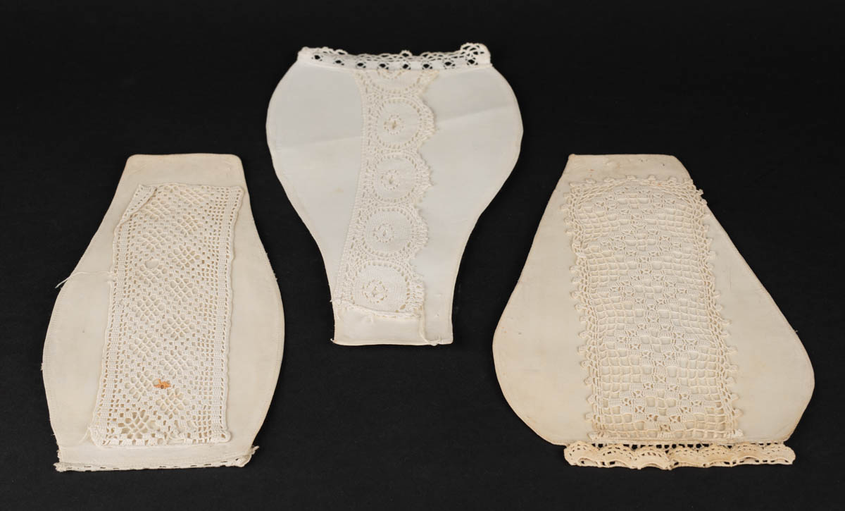 Þrjú peysubrjóst með hekluðum blúndum - Textíll - Ómerkt. 27 x 17 cm