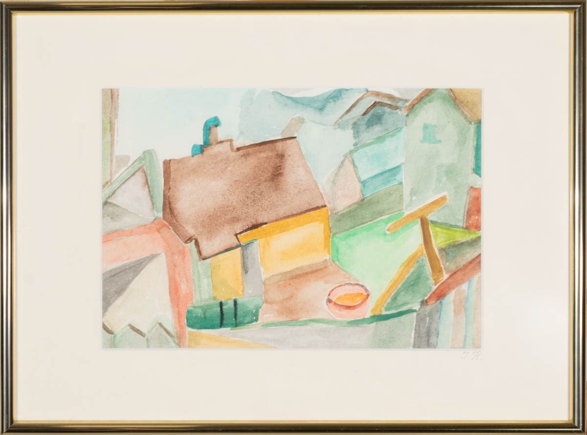 Húsþök - Vatnslitir - Merkt I.K. 18 x 26 cm