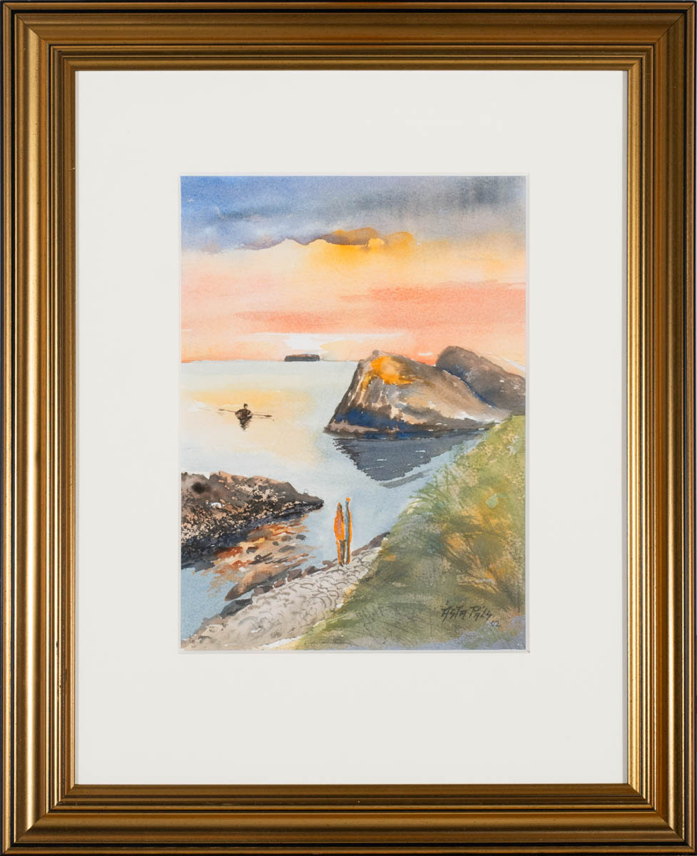Sólarlag - Vatnslitir - 2002. Merkt. 29 x 21 cm