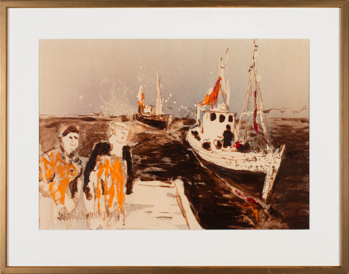 Í höfn - Vatnslitir - Merkt. 47 x 67 cm