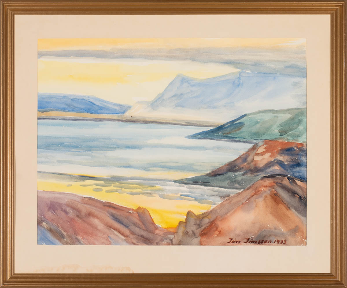Landslag - Vatnslitir - 1975. Merkt. 46 x 60 cm