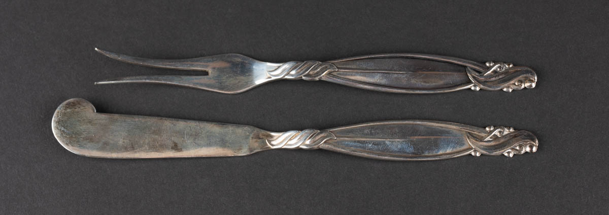Vor - smjörhnífur og áleggsgaffall - Silfur - 925s. 54g. Merkt. 15 cm