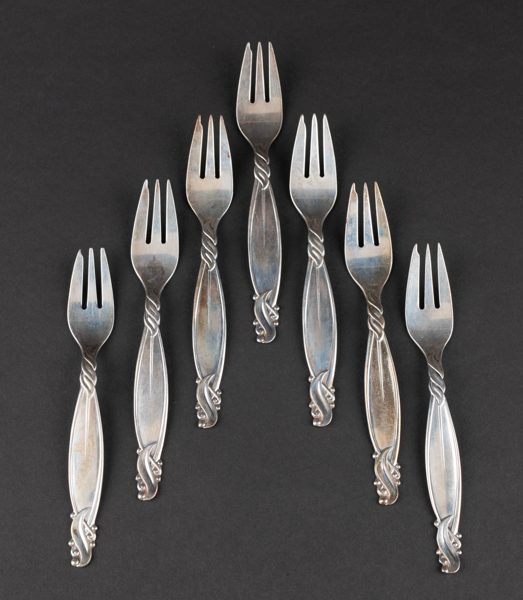 Vor - sjö kökugafflar - Silfur - 158 g. Merkt. 14 cm