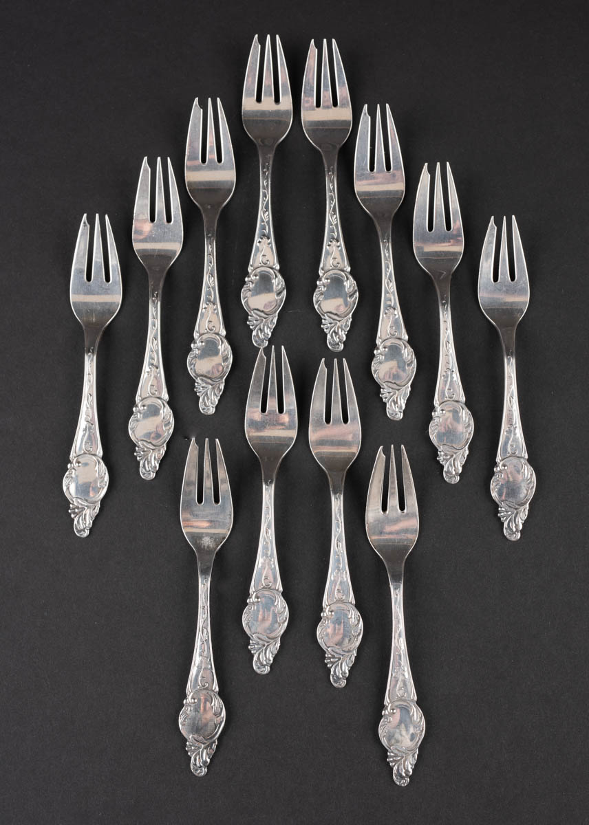 Renaissance - 12 kökugafflar - Silfur - 243 g. Merkt. 13 cm