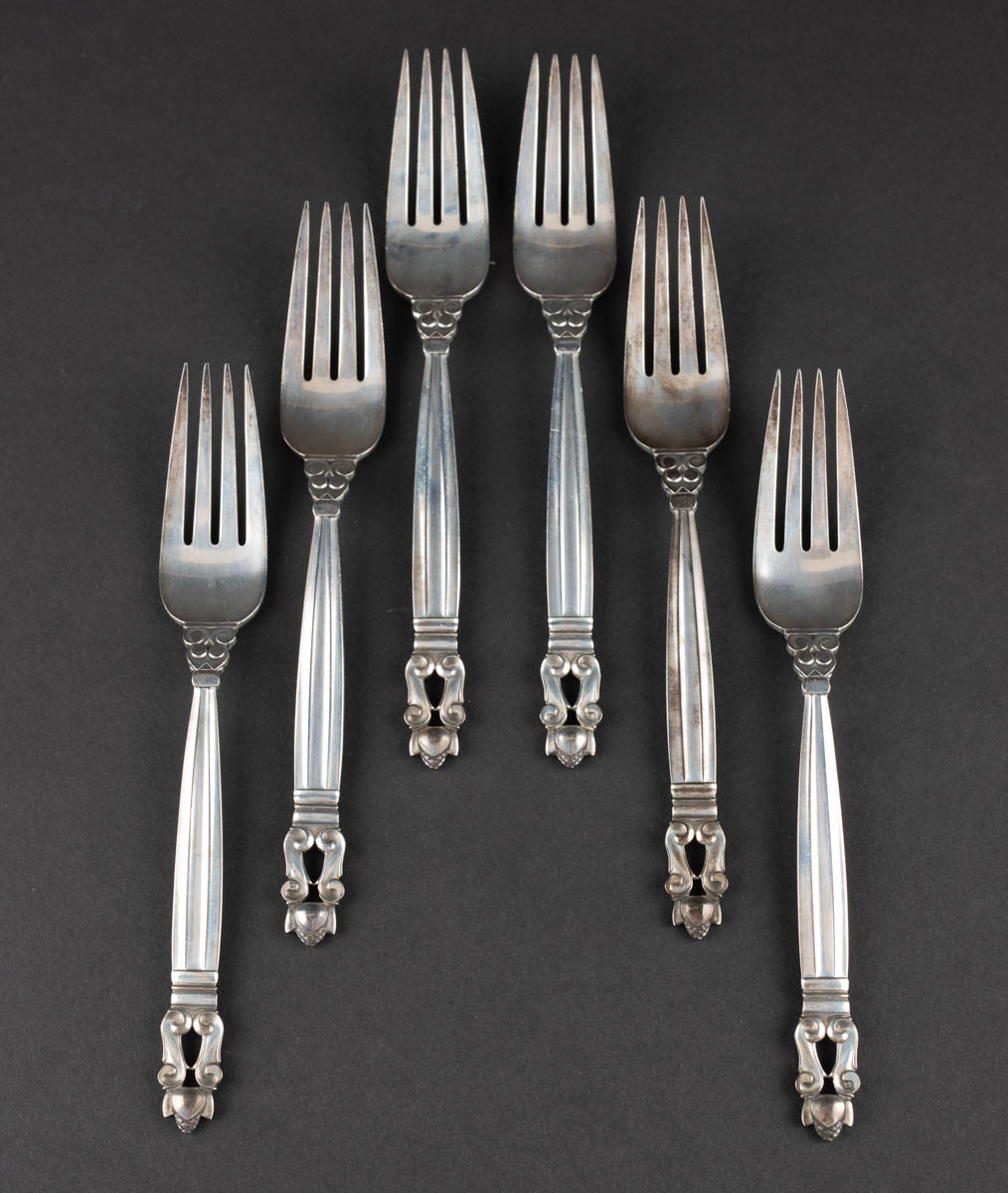 Akorn - Sex forréttagafflar - Silfur - 260 g. Merkt. 17 cm